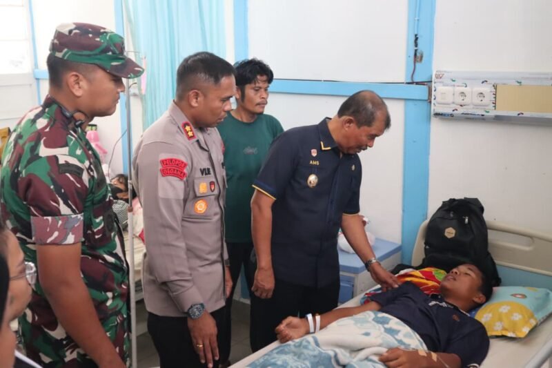 NWT24JAM.CO.ID || Toba – Kapolres Toba AKBP Vinsensius Jimmy Parapaga, S.I.K bersama Wakil Bupati Audi Murphy Sitorus dan Dandim 0210/TU, Letkol Kav Ronald Tampubolon, SH, M.Han, menjenguk sejumlah siswa sekolah SMPN 1 Laguboti yang dirawat di Rumah Sakit(RS) HKBP Balige dan Porsea, pada Kamis (16/10/2025)
